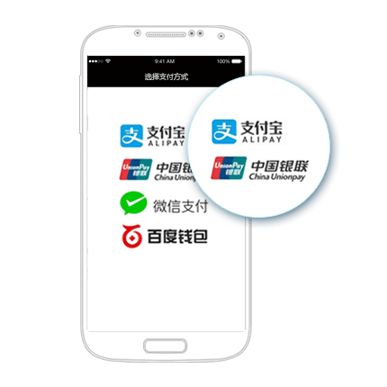 清迈支付平台,为iOS/Android原生/H5 App提供支付解决方案:支持微信支付、支付宝支付、银联手机支付、百度钱包等。